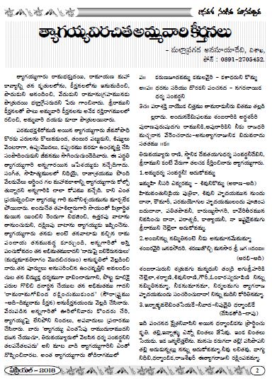 త్యాగయ్య విరచిత ‘అమ్మవారి కీర్తనలు’ సంగీత లోకానికి వెలుగు దివ్వెలు సంగీతం-‘మోక్ష సాధనం’ శ్రీ కృష్ణ లీలా తోరణం రామా!పురుషోత్తమా శ్రీ... read more