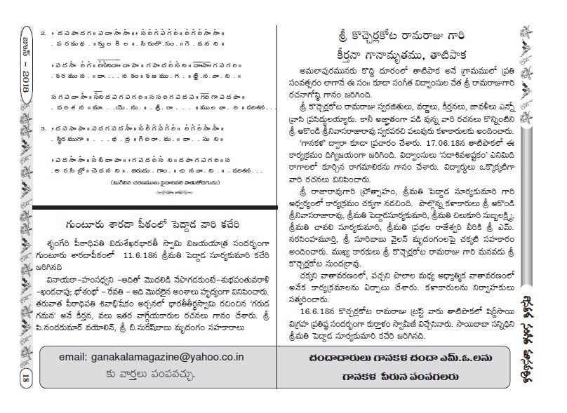 భద్రాచలరామదాసుకీర్తనలు-జూన్2018 ఆనంద సాగరమీదని దేహము భూమి భారము శ్రీమాన్ డా పెద్దింటి సూర్యనారాయణ దీక్షితులు శ్రీకృష్ణ లీలాతోరణం-జూన్2018 బహుముఖ ప్రజ్ఞాశాలి-ఆదిభట్ల... read more