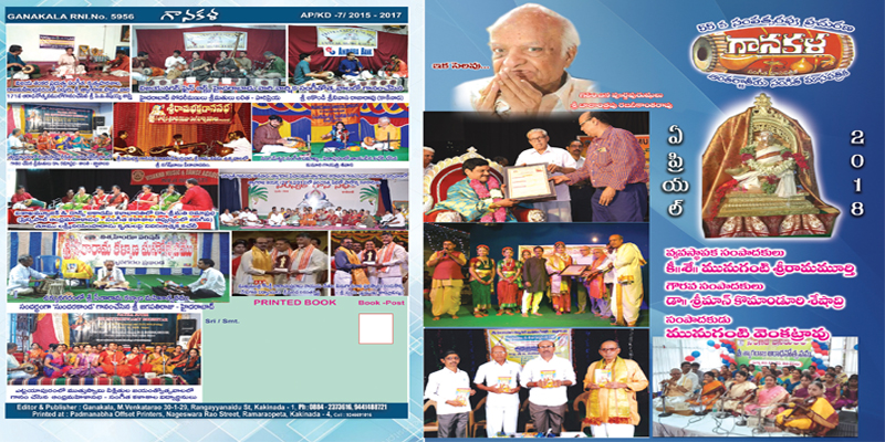 త్యాగయ్య విరచిత ‘అమ్మవారి కీర్తనలు’ సంగీత లోకానికి వెలుగు దివ్వెలు సంగీతం-‘మోక్ష సాధనం’ శ్రీ కృష్ణ లీలా తోరణం రామా!పురుషోత్తమా శ్రీ కృష్ణ భావనానందం భైరవి రాగం-చారిత్రాత్మక నేపథ్యం సంగీత సభల కార్యకలాపములు-విహారి-ఏప్రిల్2018 Ganakala-April-2018.pdf (66 downloads)